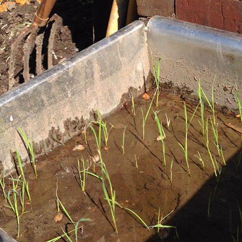 The abokichi rice paddy is looking happy after the rainy weekend. #urbanricepaddy #abolabo #abofarm #riceisnice