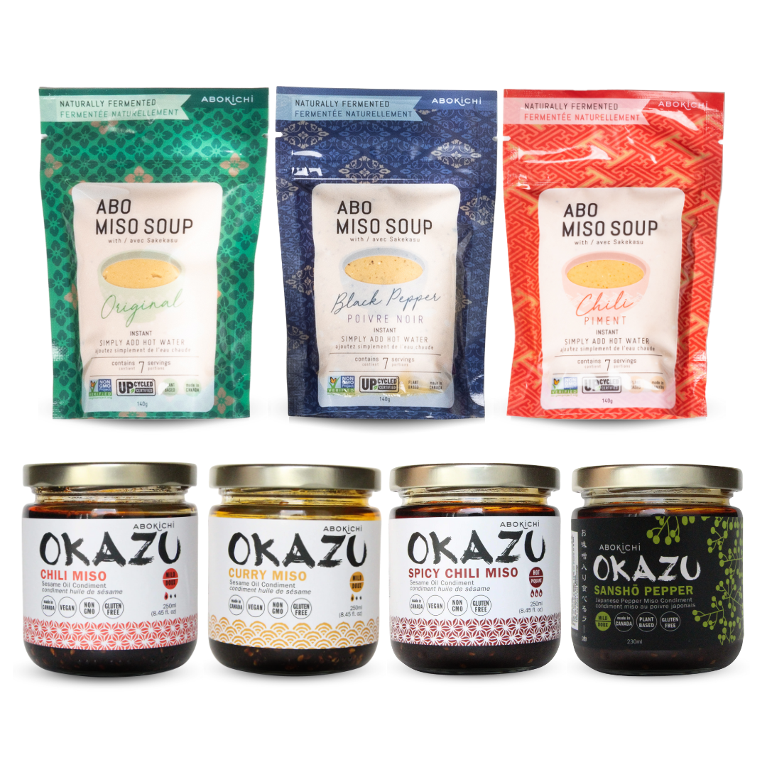 This tasting set is perfect for the person who wants to explore all the flavours. This set contains all 4 flavours of OKAZU and all 3 flavours of ABO Miso Soup.
